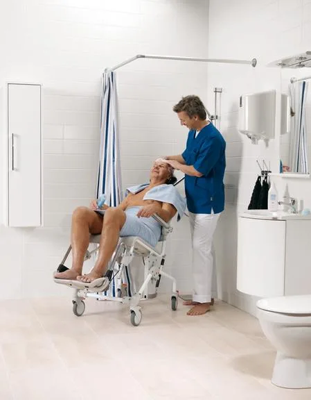 Hay personas que se pueden levantar por sí mismas, pero necesitan una ayuda porque sólo pueden dar un mínimo de pasos, no deambulan lo suficientemente bien, para ello se utilizaría unas sillas de duchas que llevan ruedas para poder llevar a la persona al baño con el menor esfuerzo posible para el cuidador o sanitario; algunas de ellas son reclinables ya que ciertas personas no apoyan los pies en el lugar correspondiente y se pueden resbalar.